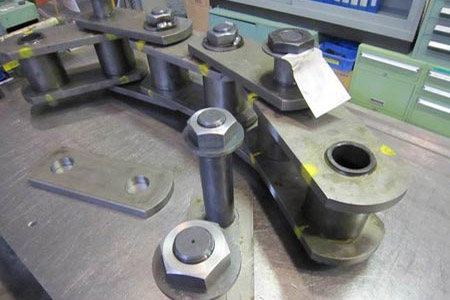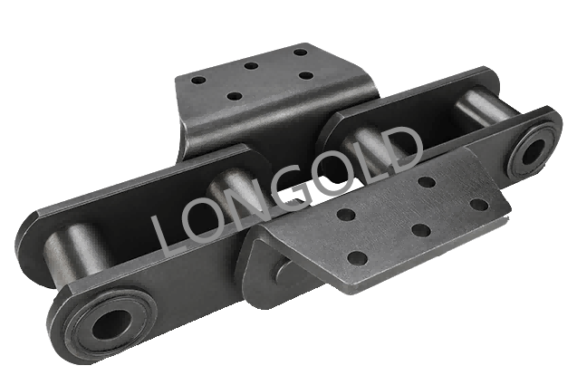 當然,單靠鏈條是無法對水體的雜質進行清除的,污水處理鏈在使用時還需要搭配刮泥擋板使用,而這兩種規格的污水處理鏈都帶有SF4附件,其附件上的四個通孔便是用于安裝刮泥擋板。